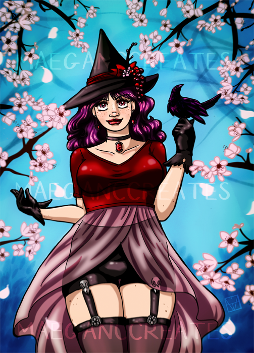 I’m really excited, I submitted a pre-recorded video of the creation of my Black Cherry Witch illustration (exclusive full preview below) and my video will play tomorrow, Saturday, at 1:30 pm. Sorry I couldn’t stream, but since it’s my birthday, we have plans to do spooky family things with my parents this weekend. 😀