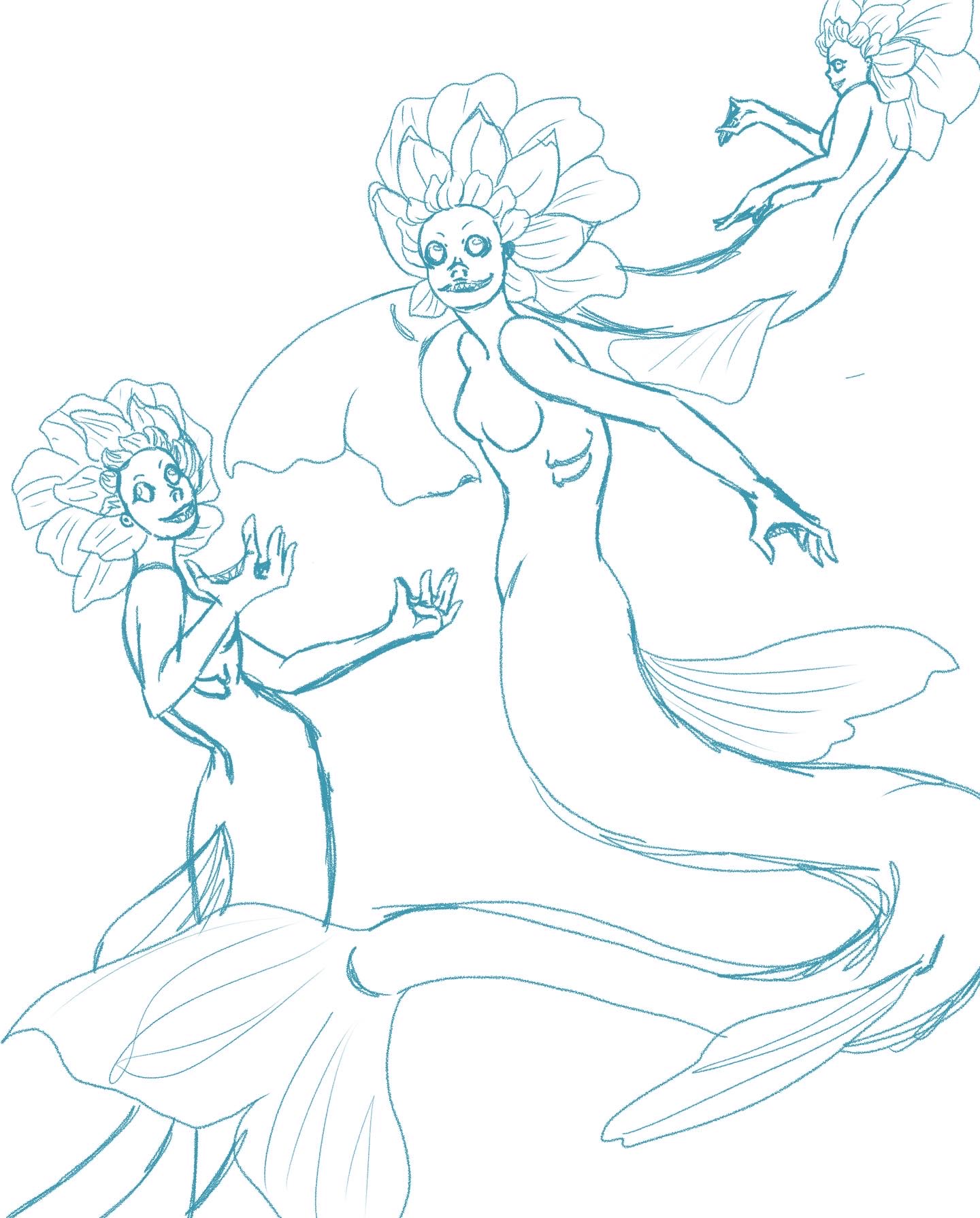 The votes are in! You guys barely broke the tie for whether these pieces will be finished as an art book or coloring pages, but I guess a coloring book won! I will probably take a break after my sketchcard project, but I’d expect to have some announcments later in the summer featuring these lovely mermaids again. 🙂